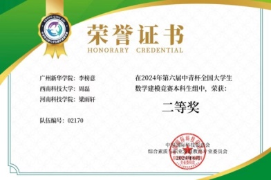 近日,2024年第六届中青杯全国大学生数学建模竞赛获奖名单揭晓,ok138cn太阳集团代表队凭借扎实的数学功底、创新的思维能力和团队协作精神,从众多参赛队伍中脱颖而出,荣获了全国二等奖两项、三等奖一项的优异成绩。