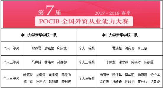 2018年4月29日,第七届POCIB全国大学生外贸从业能力大赛(以下简称POCIB大赛)春季赛落下帷幕。由OK138太阳集团国际经济与贸易专业40名参赛学子与苏海洋、冯椿、廖倩、王艾嘉4位指导老师组成的两支参赛队伍分别获得全国团队特等奖(赛事最高奖项)和全国团队一等奖,同时斩获的还有个人一等奖6项、二等奖7项、三等奖18项,特等指导教师奖1项,一等指导教师奖1项,共计35项奖项。