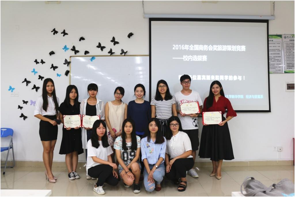 今年的11月7日至11月9日,由中国国际商会、商业行业商会等部门主办的2016年全国商务会奖旅游策划竞赛将在福建省厦门市进行总决赛,这对会展班的同学是一个莫大的挑战和机会。故此,我系经济学专业会展方向的夏淼、谭健萍、吴垠三位老师从暑假开始,便积极动员和组织学生参赛。经过前期策划和赛前准备,9月9日周五晚上,中山大学新华学院校内选拔赛在会展实验室顺利举行。