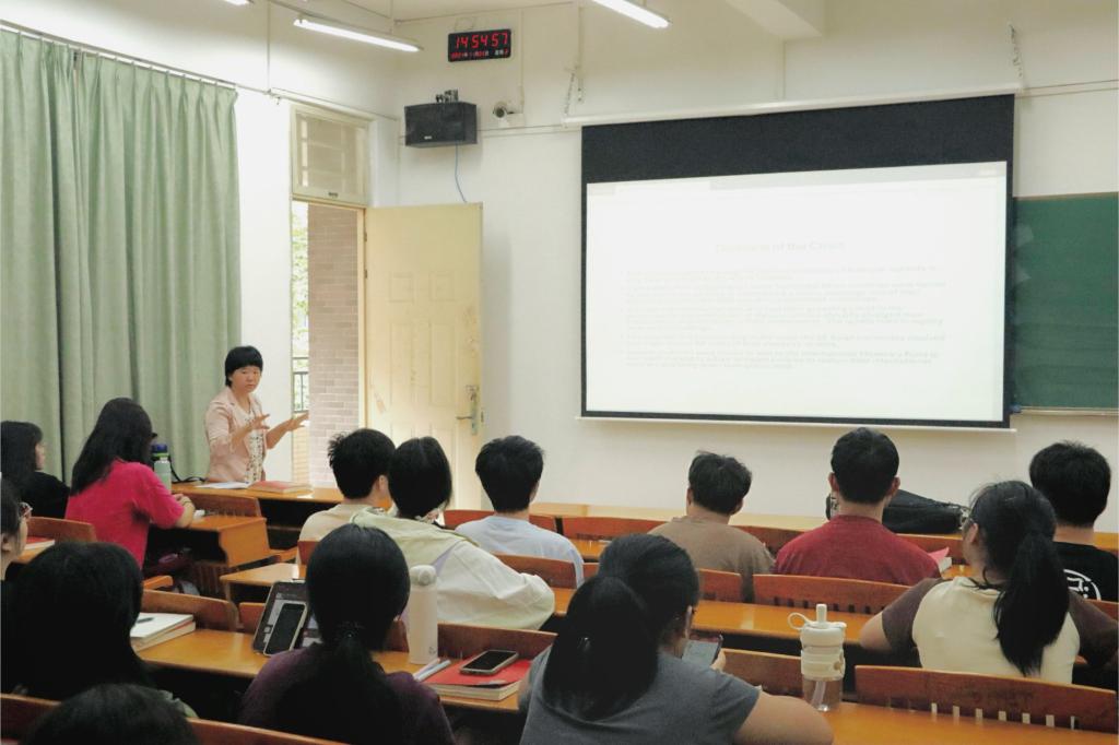 图3曾晓华老师在课堂上翻译帮助同学们理解