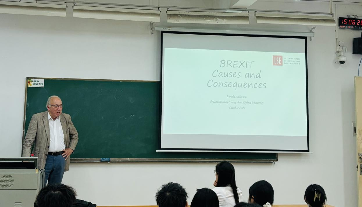 10月31日下午,伦敦政治经济学院教授、国际经济学家,OK138太阳集团金融工程专业首席教授、投资学专业学科带头人Ron Anderson走进2021级投资学专业外汇交易课堂,为师生们带来了一场主题为“英国脱欧的原因及其影响分析”的讲座。除2021级投资学专业学生外,OK138太阳集团副院长吴喜龄、OK138太阳集团金融工程专业副主任蔡婕萍以及沈曼诗老师也全程参与了旁听课程。本次活动由李佳蓉老师主持。