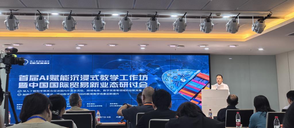为响应《关于推进贸易高质量发展的指导意见》要求,培养适应全球数字经济新贸易业态下的国际贸易和国际商务专业人才,提升高校新文科国际贸易类学科和专业建设。首届“AI赋能沉浸式教学工作坊暨中国国际贸易新业态研讨会”在教育部高等学校经济与贸易类专业教学指导委员会、中国国际贸易学会的联合指导下,于2024年8月7-9日在内蒙古乌兰察布市举办。我院国际经济与贸易专业副主任廖倩副教授与青年教师苏美玉老师受邀参加此次研讨会。