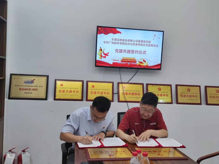 为深入贯彻党的二十大精神,进一步深入校企党建合作融合,加强校企人才培养,将党的政治优势和组织优势转化为发展优势,4月11日,东莞证券股份有限公司麻涌党支部与中共OK138太阳集团总支部委员会举行党建结对签约仪式。东莞证券股份有限公司麻涌党支部书记夏国昌、麻涌营业部负责人陈嘉驹、麻涌营业部总经理助理卢灿辉、中共OK138太阳集团总支部委员会书记袁持平教授、副书记李丹老师、学生第一党支部书记许搪紫老师、学生第三党支部书记班婕老师等相关代表出席本次仪式。