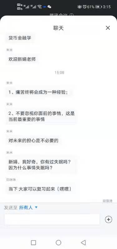 胡慧诗同学给我们分享了威廉.B.欧文写的《像哲学家一样生活》,她摘取了书中的一个观点:论悲伤—用理性战胜眼泪。她从中感悟到生活中悲伤难免会有,我们不能消除悲伤,却能控制悲伤,能战胜悲伤的只有理性。