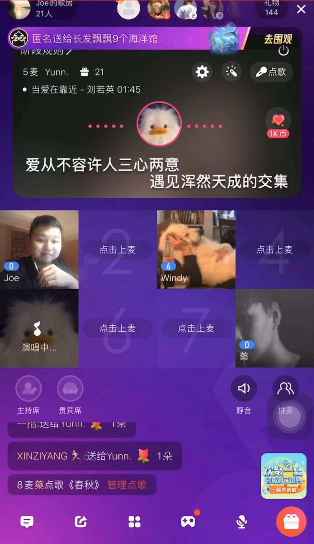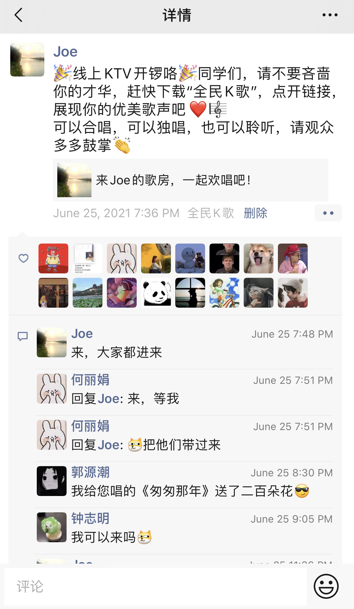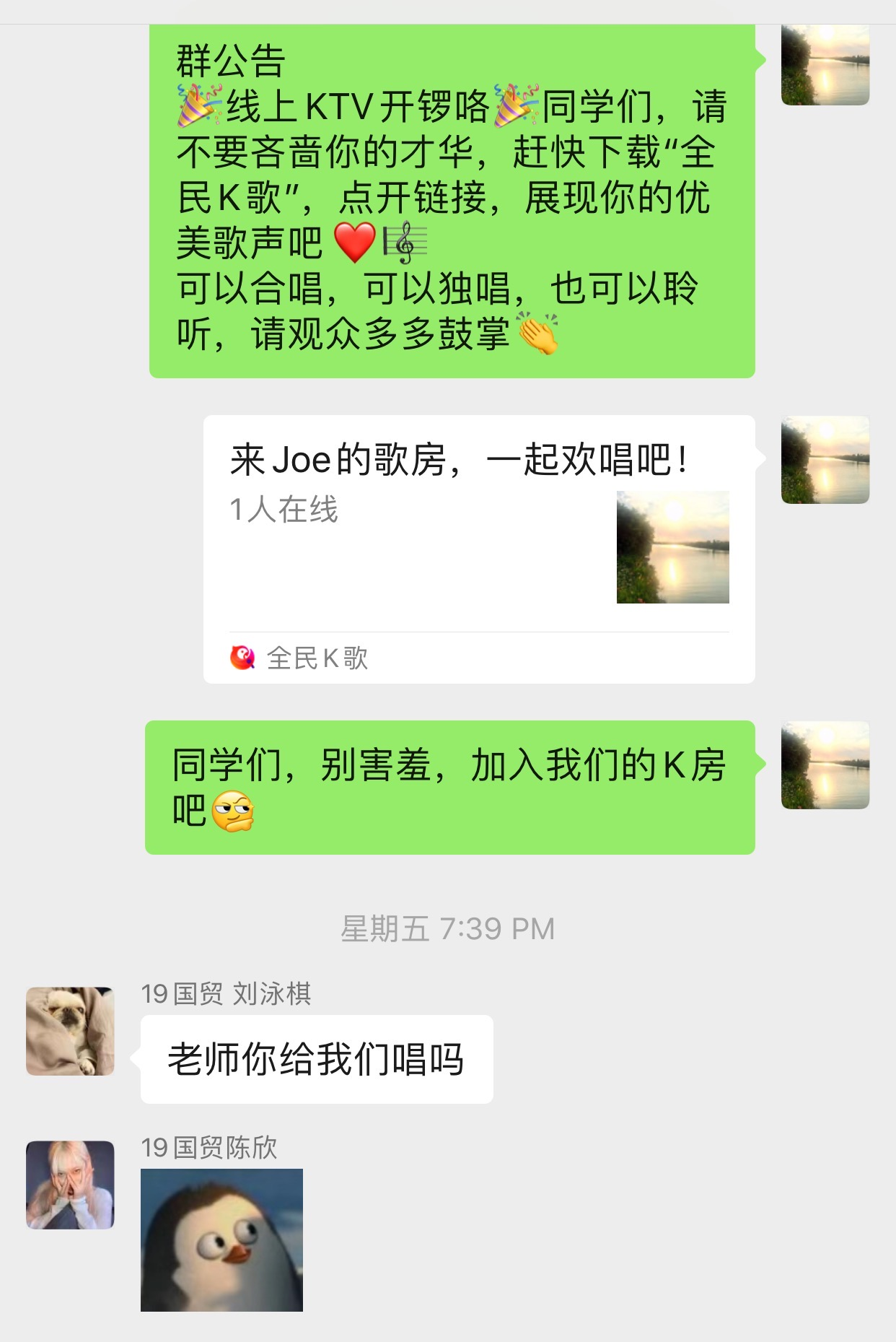 “老师,我怀念和朋友们在歌房欢唱的日子”;