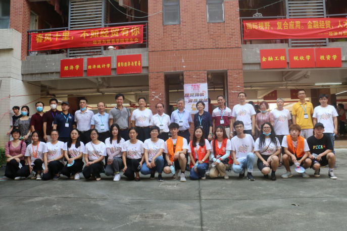 (图7 校领导与经贸学院全体迎新人员合影留念)