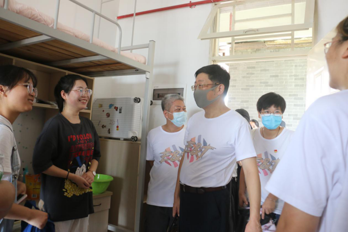 接着,经贸学院院长袁持平、副院长方建国等领导老师走访了新生宿舍。袁院长亲切地与新生交谈,关心他们的入住情况及对新环境的适应情况,同时也嘱咐新生要早定目标,脚踏实地,在学习知识的同时,能够提升实践能力,争取做到知行合一。对于新生的疑问,袁持平院长一一耐心解答,让新生初进校门便有了家的归属感。最后,袁院长希望新生能够尽快融入新环境,学习专业知识,增强社会实践能力,秉承经贸学院“国际视野、复合应用、金融贸易、人才摇篮”的理念,成为服务社会的经贸精英人才。