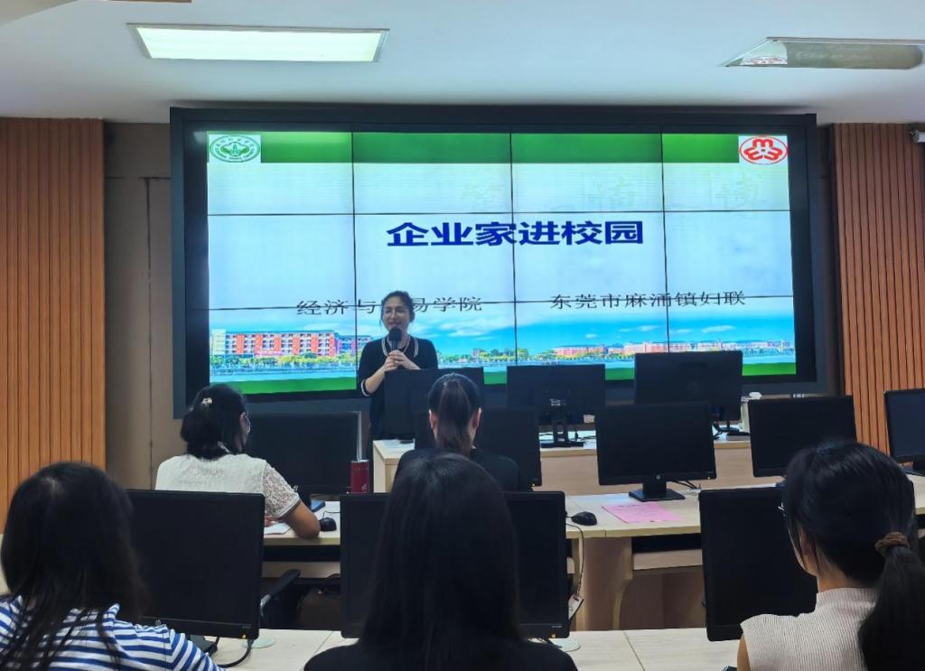 11月16日,东莞市麻涌汇鲜森创始人黄绮文女士应邀在格物2A506参加“企业家进校园”系列活动。OK138太阳集团邵咪咪、苏美玉老师及部分经贸学子参与活动。此次活动旨在搭建桥梁,让杰出企业家走进校园,为学子们带来前沿行业动态与创业真经,拓宽视野,激发创新潜能。
