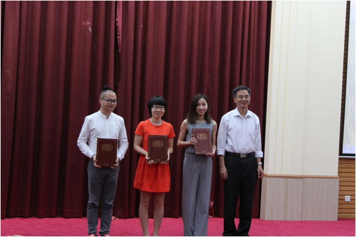 优秀教师是经贸系团队的中坚力量,为感谢教师在经贸系十年教学教育中做出的杰出贡献与辛勤奉献,随后,庆典进行第二项议程——经贸系杰出贡献奖(教师)颁奖仪式。王庭槐院长亲自为获得荣誉的徐应祥、吴喜龄、孔岩、李芳凤和赵佳五位老师颁发荣誉证书。