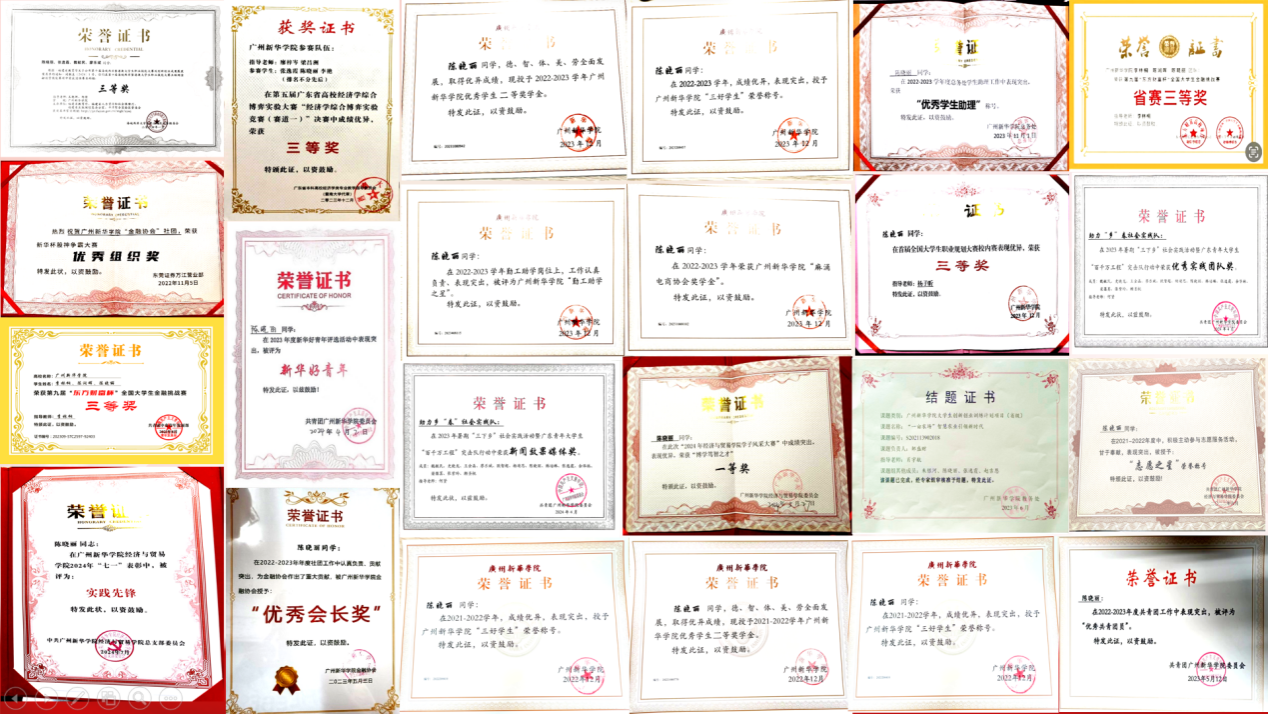 “无论明天如何,请你享受今天”。在追求学术成就和职业发展的道路上,陈晓丽同学没有忽视自我激励与适时放松的重要性。生活不仅仅是一连串的目标和计划,它还包括那些不经意的美好瞬间:校园里木棉花的绚烂绽放,朋友间聚餐的温馨,都是陈晓丽同学学业生活中不可或缺的美好瞬间。她时常对日常生活保持好奇心,去探索、去体验。无论是一次说走就走的旅行,一场意料之外的冒险,亦或是校园的林荫道上漫步,这些简单的时刻,如同生活中的小确幸,都能使她的大学生活更加精彩。