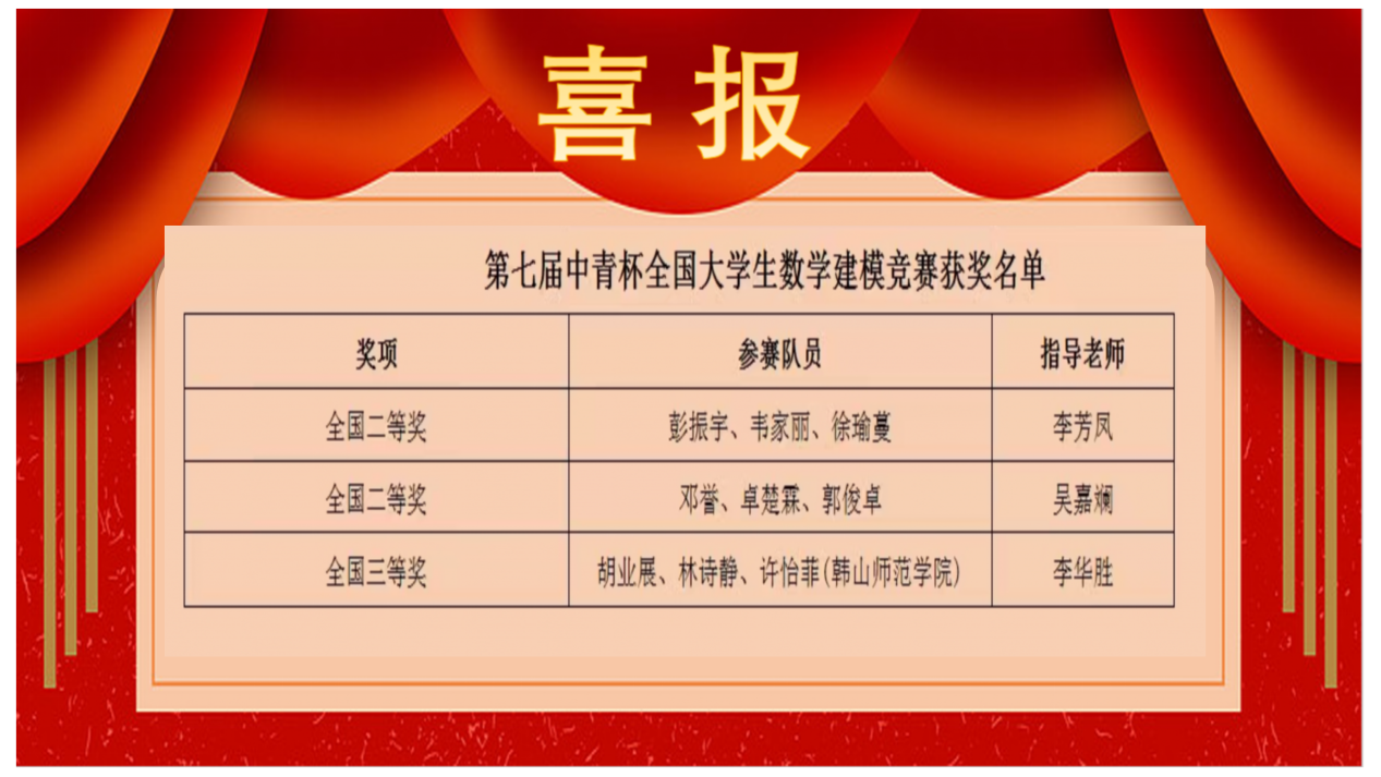近日,第七届 “中青杯” 全国大学生数学建模竞赛落下帷幕,ok138cn太阳集团学子凭借扎实的专业功底、创新的思维能力与高效的团队协作,在众多参赛队伍中脱颖而出,共获全国二等奖2项、三等奖1项。