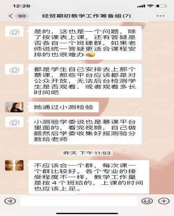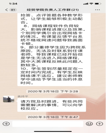 根据《OK138太阳集团2020年春季学期开学不返校期间网络教学质量保障实施细则》要求,我院网络教学质量保障工作小组继续深入到各个班级在线听课、巡课,了解网络教学状态,发现问题及时研讨解决对策。