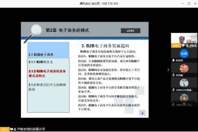 大多数学生能够积极准备,早早进入课堂,上课过程中主动参与课堂交流互动。个别同学由于家里网络原因偶尔存在问题,导致课堂掉线,但课后都能联系老师,解决问题的主动性比较强。
