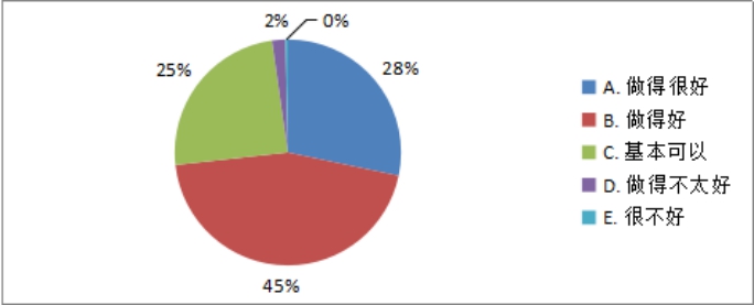 为了让学生尽快适应网络教学,老师们在课前发布了清晰的教学目标、学习要求、重点难点和考核方式并提供学习资料情况,73%的学生认为“做得很好”和“做得好”。