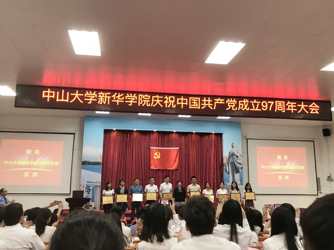 2018年7月1日下午,中山大学庆祝中国共产党成立97周年大会在梁銶琚堂隆重召开。会上,对表现优异、贡献突出的优秀共产党员、优秀党务工作者和先进基层党组织进行表彰。中山大学校党委余敏斌副书记宣读中共中山大学委员会表彰决定,中山大学新华学院OK138太阳集团第一学生党支部荣获“中山大学先进党支部”称号,OK138太阳集团第一教工党支部李斯同志、OK138太阳集团第一学生党支部丁诗诗同志荣获“中山大学优秀共产党员”称号。