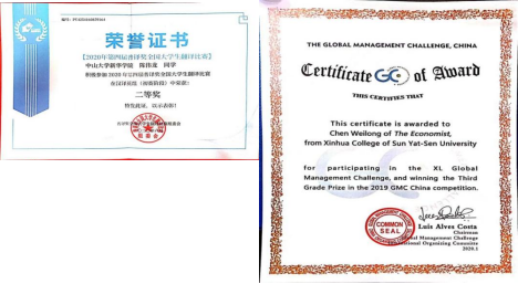 陈伟龙 第四届普译奖全国大学生翻译比赛 二等奖