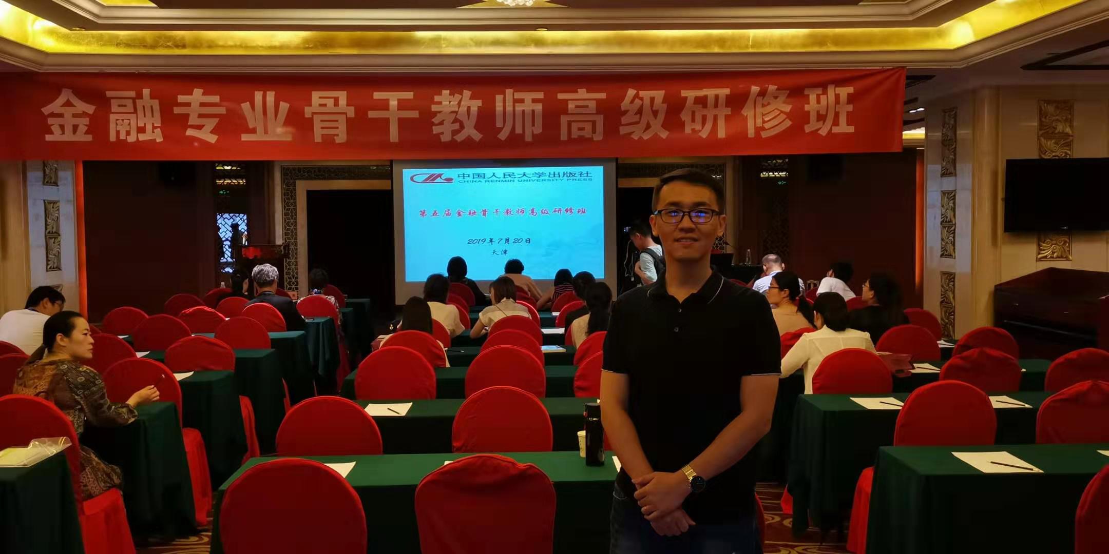 2019年7月19日—21日,中国人民大学出版社举办的 “第五届金融专业骨干教师高级研修班”在天津召开,经贸学院教师孔岩参加了本次会议。会议邀请了中银国际证券总裁助理、首席经济学家徐高,对外经济贸易大学教务处处长蒋先玲,中国人民大学财政金融学院教授马勇,深圳瀚德金融科技控股有限公司董事长曹彤4名专家参会,围绕现代社会大数据、云计算、人工智能、区块链以及移动互联大背景下开展金融理论、金融科技和金融实务的研究,从不同角度做了有启发性的报告。参会教师通过本次培训,深入了解金融学科发展的前沿,交流了先进的教学方法和教学理念。