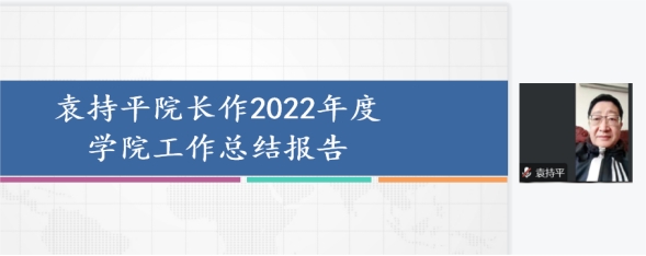 图2 学院院长兼书记袁持平作2022年度学院工作总结报告