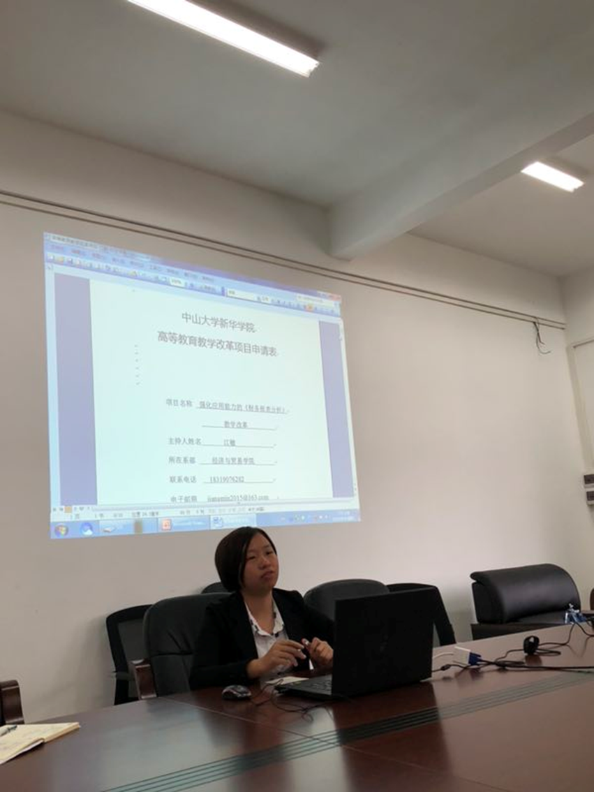 接着,江敏老师分享了《强化应用能力的财务报表分析》这一教改项目的申请书,其项目旨在探索如何强化学生分析能力让学生能够学以致用,以及锻炼学生的财务报告写作能力。同时,她分享了《政治关系、企业经营治理与资源配置效率》这一研究议题,并就课题论证设计和总体框架设计等问题向两位专家请教。方建国副院长建议,强化学生应用能力是目前学校的教学大趋势,在“互联网+”时代,强化工具的应用,比如EXCEL在财务报表中的应用,也是一种非常有意义的探索。杨永福教授建议,青年老师做科研时,首先应该对研究整体有认识,研究应该解决什么问题,问题的重点和难点怎么把握;其次,创新点的把握往往是很多项目申报书的弱势,申报者应该准确把握何为创新点而不是陷入别人没做过的研究就是创新点这一误区。
