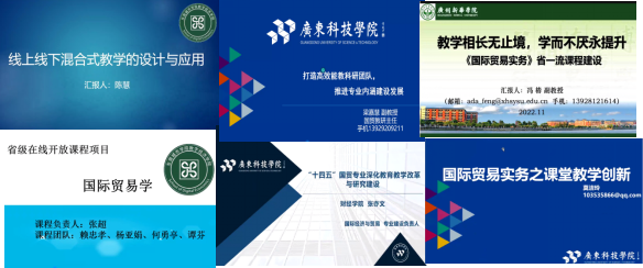 随后,三所兄弟院校的国贸专业教师代表就一流课程建设、课程思政示范、创新教学模式上的具体实践进行分享。