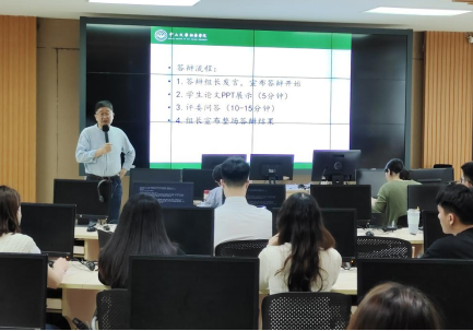 从2023届毕业论文工作的整体情况看,对于全员答辩,我院准备充分,安排合理,组织有序,效果良好。首先,学院领导高度重视,严密部署,准备工作充分扎实。学院成立了以院长袁持平为组长的毕业论文工作领导小组,以专业为单位,统筹管理论文工作。其次,结合教师往届的指导情况,专业内充分讨论确定最终的指导名额,鼓励指导出优秀论文的教师多带学生,并对指导情况不佳的教师名额予以降低,保障指导教师队伍的优质性。同时,实行学生和教师的双向选择,保证一人一题,研究内容与专业知识契合,难度适宜。最后,组织管理严格规范,答辩小组结构合理;在学校课室紧张的情况下,我院启用实训室作为答辩场地,答辩时间、地点安排妥当,并提前报送教务处备,答辩会场秩序井然,学校教学督导陈建钢副教授到答辩现场进行答辩检查,并提出宝贵意见。