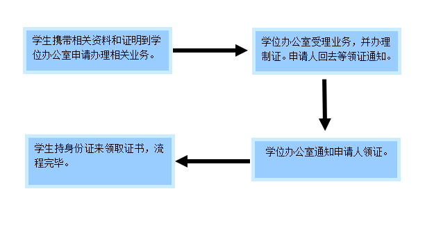 (3) 带齐上述资料到中山大学新华学院教务处学位办公室(广州校区行政楼210室),将资料提交给教务处学位办公室报批,等候通知领取学位证明书。