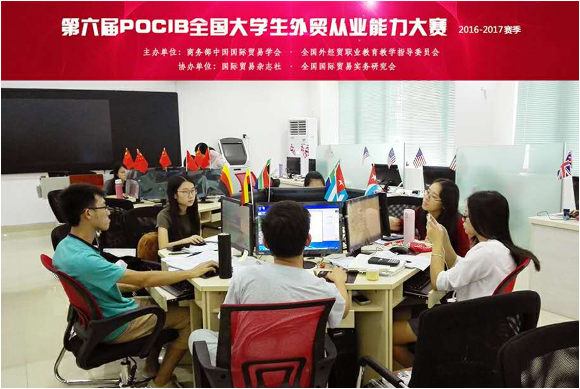 POCIB(Practice for Operational Competence in International Business)是目前展示我国外经贸教育成果和相关专业学生专业水平的顶级赛事。它以提高外贸综合业务技能为目标,仿真在线国际贸易业务操作,全面考察学生的学习能力、业务能力、跟单能力和综合能力。参赛队员须全面完成二十笔进出口业务才能达到优秀。