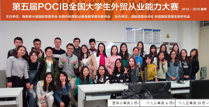 POCIB(Practice for Operational Competence in International Business)全国大学生外贸从业能力大赛由商务部中国国际贸易学会和全国外经贸职业教育教学指导委员会主办,是国际经济与贸易专业最高级别的竞赛,内容涵盖从事进出口贸易所需要的全部知识和技能。从2010年商务部推出该赛事至今,我院经贸系一直积极组织国贸专业学生参加,为经贸人才培养引入创新、高效、务实和科学的教学方法和培训手段。本次大赛共吸引全国各地的本、专科院校208支参赛队伍、4160名学生参与,他们来自南昌大学、湖北大学、湖北工业大学、长春工业大学、临沂大学、五邑大学、福建工程学院等,竞争异常激烈。