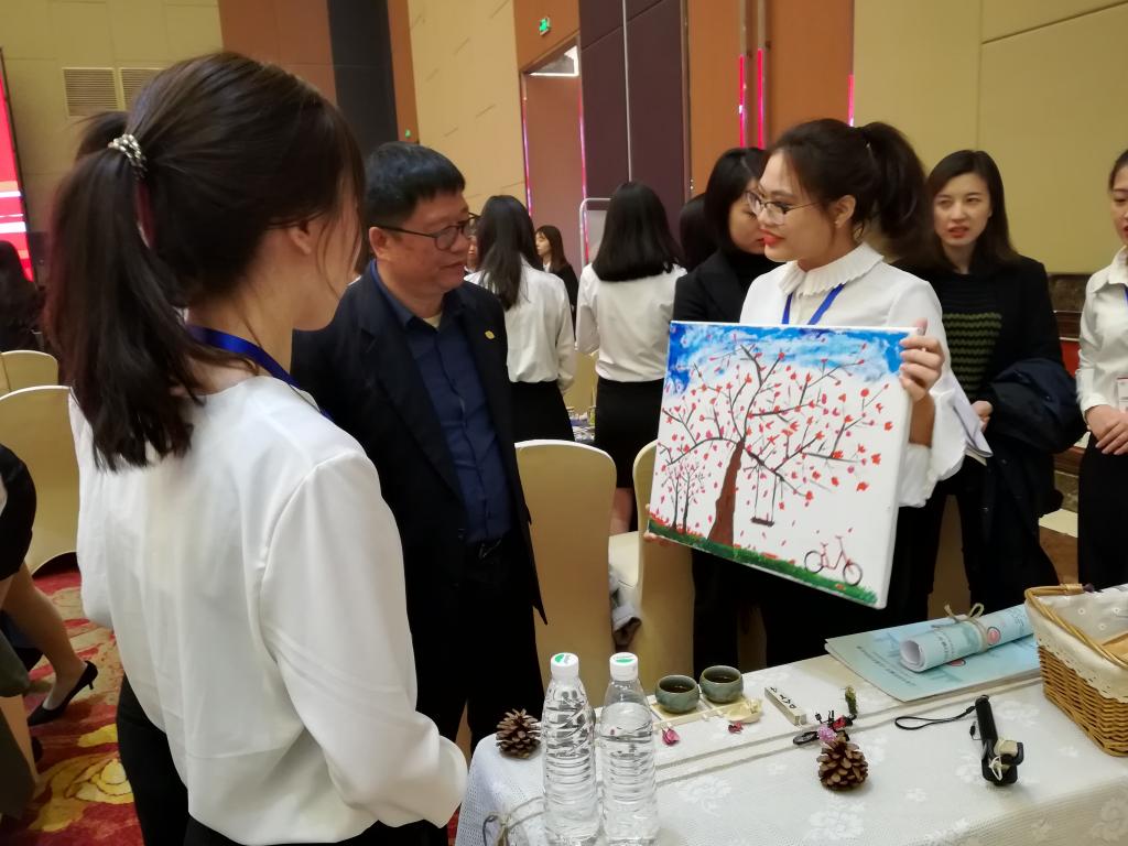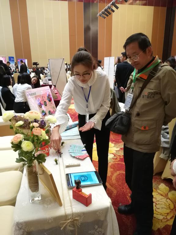 新华学院代表队“DHLX团队”,在展洽会比赛、方案策划成果展示比赛现场进行展示