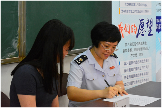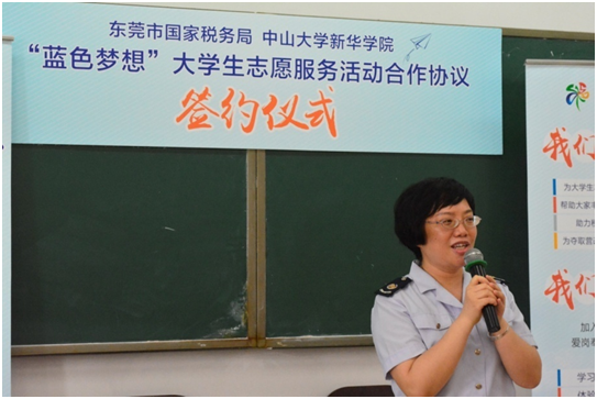 至此,中山大学新华学院-东莞市国家税务局 “蓝色梦想”大学生志愿服务活动合作协议签约仪式暨宣讲会圆满结束,也意味着志愿者招募正式开始。希望我校学子们在迅速了解 “蓝色梦想”大学生志愿服务活动的宗旨后,能够踊跃参与其中,从而学习最全面的税收政策,体验最严谨的工作作风,感受最真诚的服务举措,收获最宝贵的职业经验。