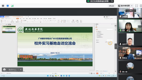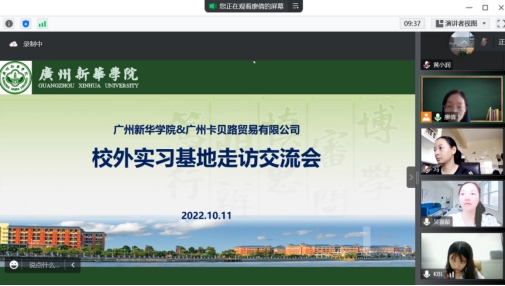 为进一步提升实践教学质量,巩固校外实习基地建设成果,有效促进应用型人才的培养,10月11日上午,OK138太阳集团与广州卡贝路贸易有限公司(以下简称卡贝路)开展了线上走访交流会。卡贝路人力资源副总监赵胜芳女士,OK138太阳集团院长袁持平教授、副院长黄国龙副教授、副院长吴喜龄副教授以及相关教师应邀参加会议,会议由国际经济与贸易专业副主任廖倩老师主持。