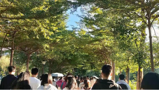 “锒铛锒铛……”放学铃声响起,昔日的干饭人现已不用挤在周围是绿油油的树的绿道上,也不用担心会一不留神就踩掉前面同学的鞋,更不必尴尬地连忙道歉。