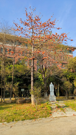 图1 左是定静2旁的充满绿色栾树 右为孔夫子石像前的木棉花树