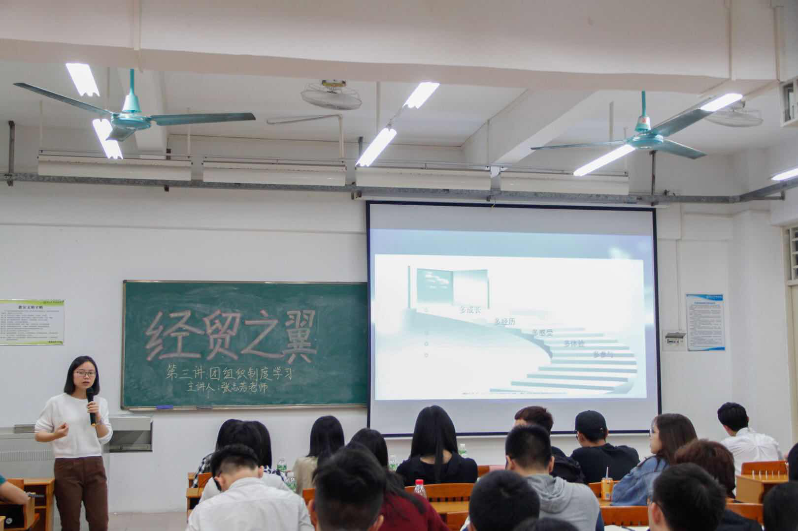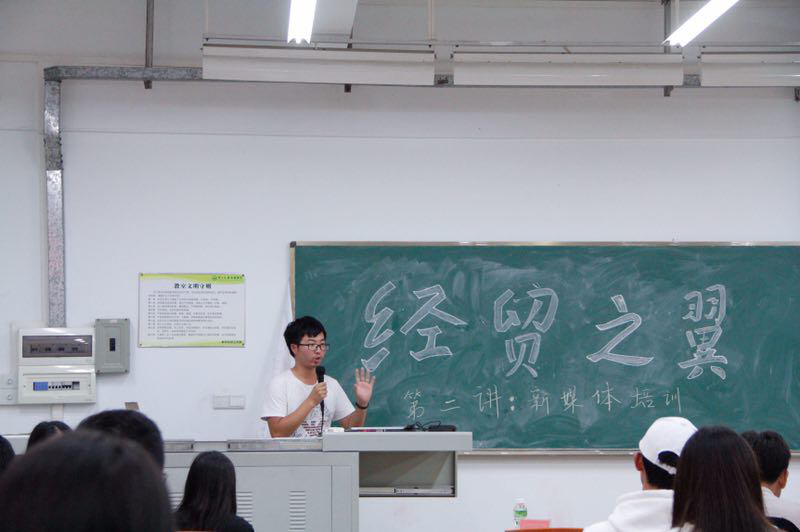 2017年11月27日晚,随着“经贸之翼”开营,授旗仪式结束,第一讲拉开帷幕。此次经贸院团委培训邀请了实践部副部长余祖锷给大家讲解策划书写作要求及技巧。余祖锷向干事们讲述了写策划书的技巧和在写作过程中应该注意的要点,对策划书格式,整合资源,策划关键等方面进行阐述,并分享了他加入院团委以来策划活动的宝贵经验。最后在与新干事中的互动中,就在写策划书可能出现的问题谈了诸多解决方法。