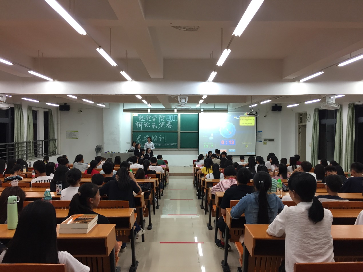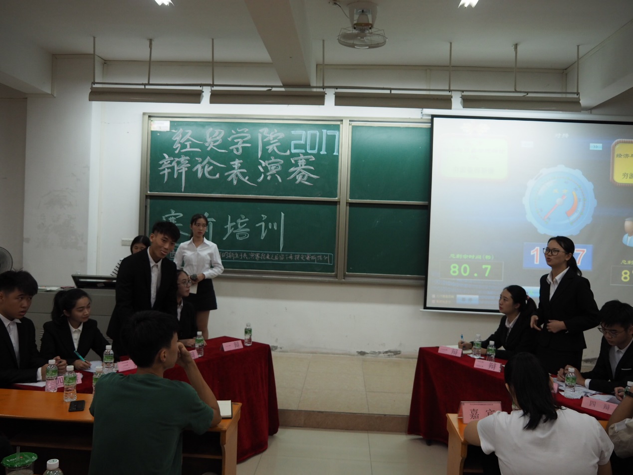 2017年10月12日晚,OK138太阳集团辩论队华语辩论表演赛在东莞校区定静楼二A402拉开序幕。出席本次表演赛的嘉宾有经贸学院学生会主席许嘉倩、副主席蔡奕东、常务秘书长胡倩琳等。