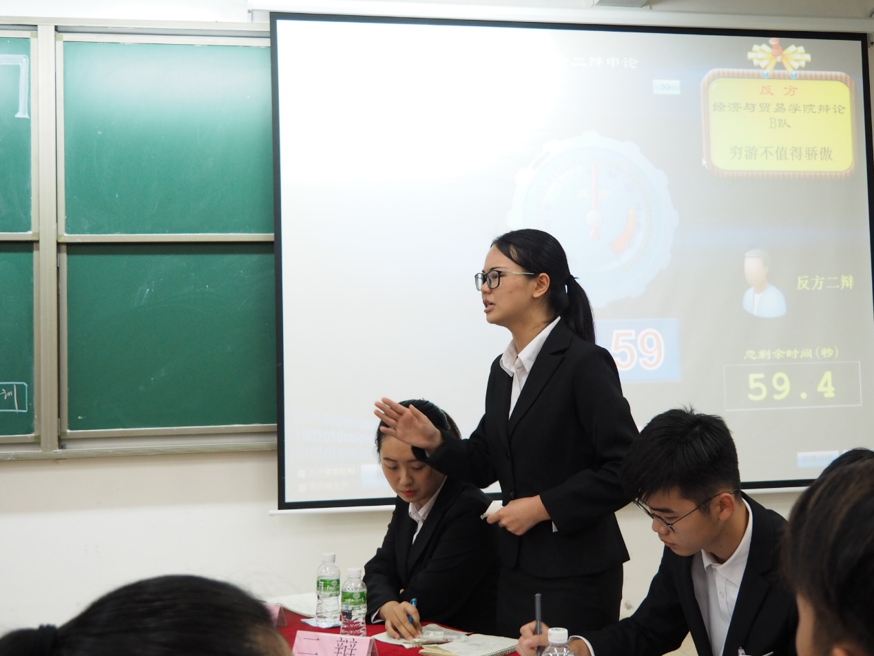 (图为正方二辩进行言辞犀利的辩论)