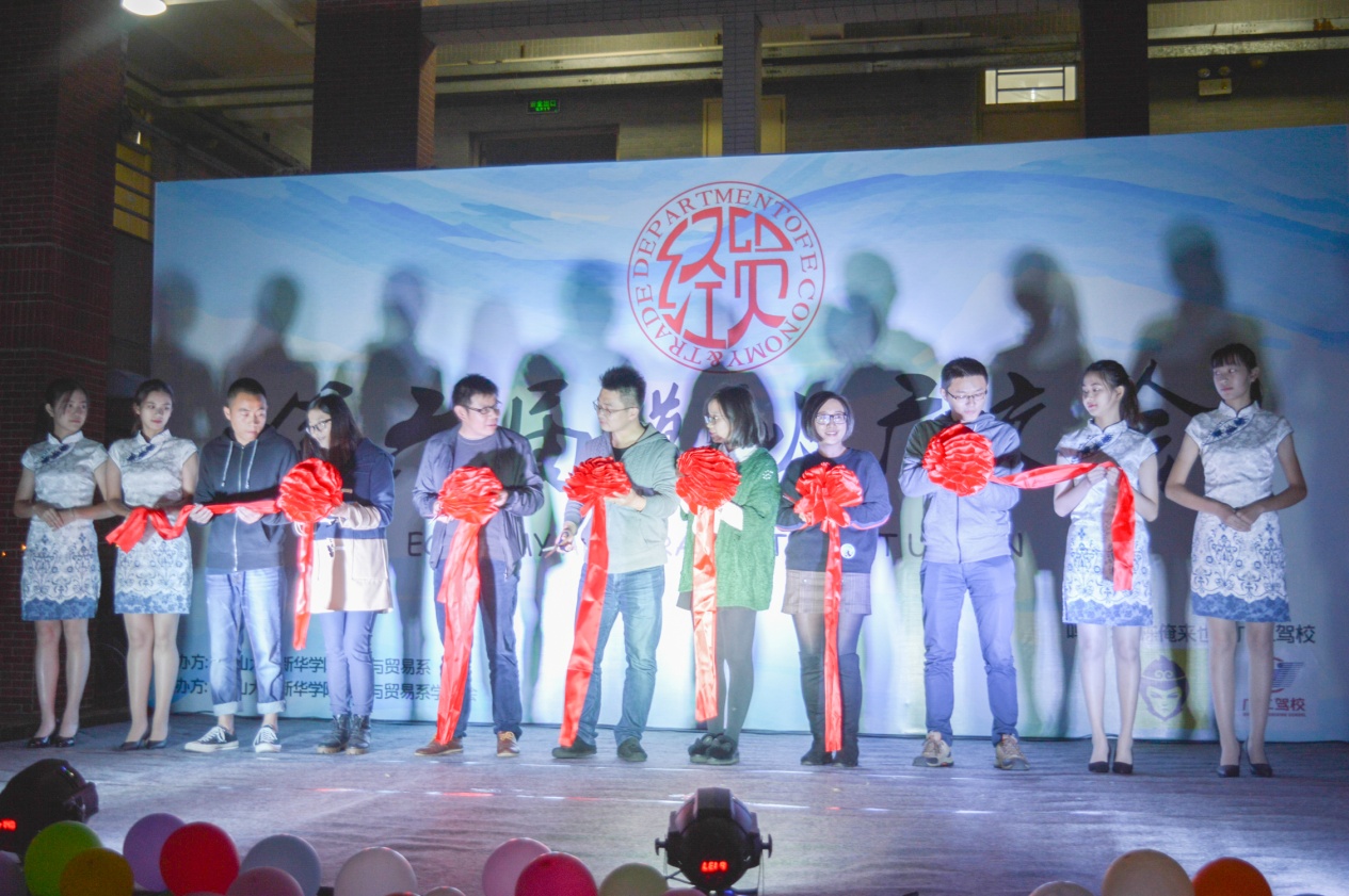 图:新华学院第六届模拟广交会开幕式剪彩仪式
