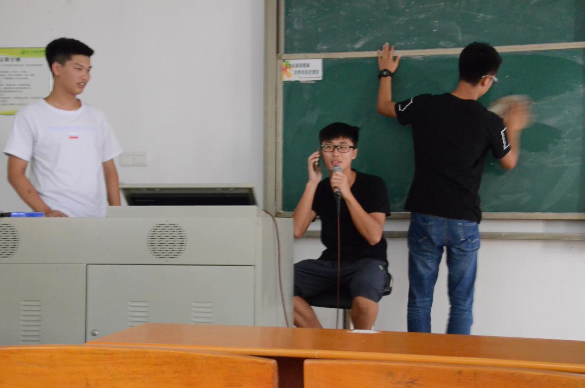 伴着新闻联播的开场音乐,主持人以新闻联播的形式宣布班会开始。首先袁持平教授为我们本次班会致辞。主任发表了他对诈骗的看法,同时希望同学们好好研究《大学新生安全教程》(第三版),学习书本的内容,防范于未然,保持头脑清醒,注意安全,防止被骗。