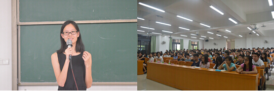 在统计学专业介绍现场,专业副主任陈敏琼首先给新生们介绍统计学界的公司以及统计学的就业前景和学习方式。