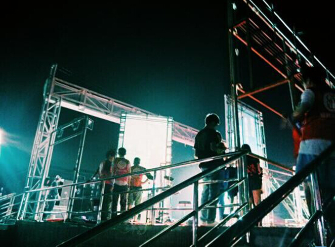 (图1 晚会即将开始,工作人员紧张筹备)