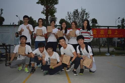 图三 团总支副书记詹佳妮为冠军队颁奖,并送上奖品--蒸蛋器八个