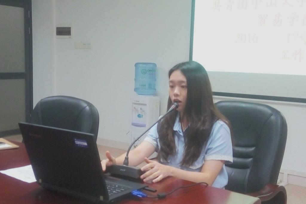 会议伊始,经贸学院各团学组织汇报2016-2017学年到目前的工作进展、工作安排和工作准备情况。院团委学生副书记张嘉仪、学生会主席赖秋琛、博易社副社长曾楠、“梦飞扬”志愿服务队候选干部陈上清分别针就各组织的干部管理办法、组织部门改革优化方案、年度汇编、换届选举方案、校级评优总结等方面作详细汇报。