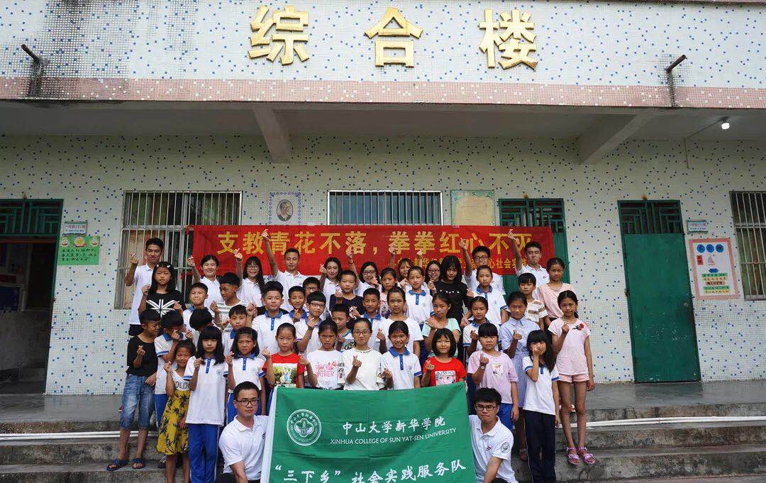 红心社会实践队与夏令营活动学生合影