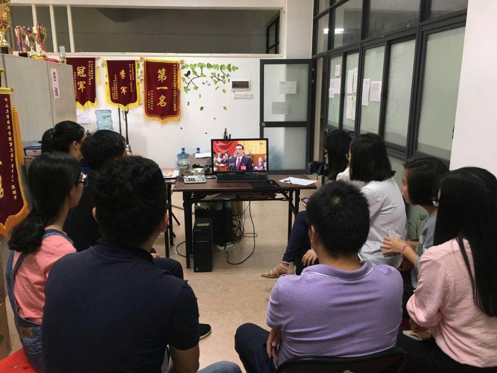 图:经贸学院党总支李海峰副书记和老师们集中收看十九大报告,表示要为经贸青年学子筑梦,做好新时代的学生引路人