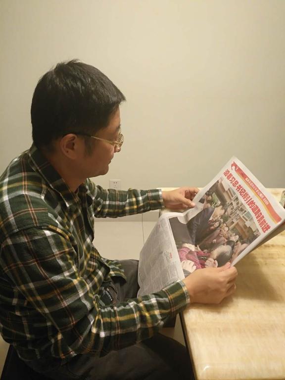图:经贸学院党总支委员、教职工党支部书记李斯老师与老师们学习十九大报告,表示“身处教育行业,时刻未敢忘忧国”