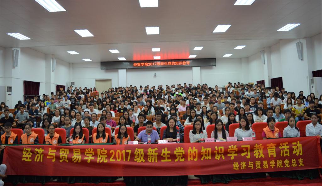 图:经贸学院党总支在10月18日下午,迅速召开2017级新生关于十九大和党的知识学习教育专题活动,并进行心得交流