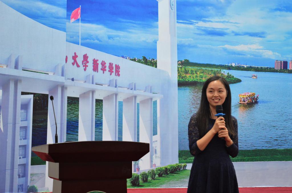 活动第二项,由OK138太阳集团2014级优秀学生党员丁诗诗同志分享个人事迹。丁诗诗同志结合十九大“初心不变,牢记使命”的大会主题,进行了“初心不变”的话题分享。她向新生们分享了她担任学生党支部宣传委员一职,在工作岗位上以自己的行动争做一名优秀党员的点滴,这个工作过程充满着各种挑战,但依旧坚守初心,继续前行,同时还分享了三下乡的实践经历。因此她希望在场的争做党的接班人的新生们能够做到“初心不改,知行合一”。