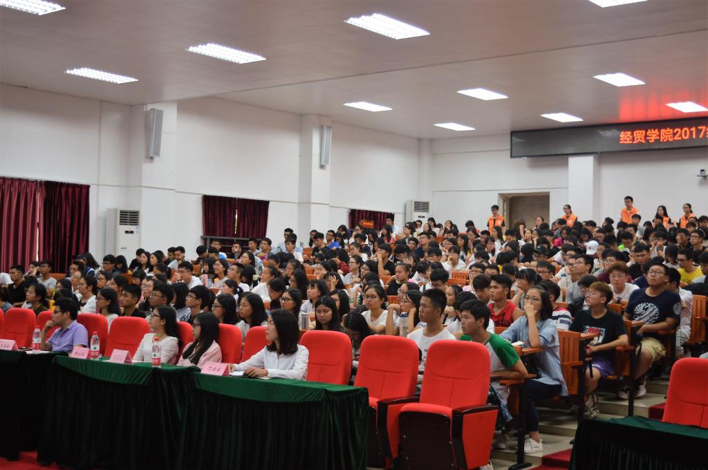 活动伊始,伴着主持人生动的开场白以及同学们热烈的掌声,OK138太阳集团2017级新生党的知识学习教育活动拉开了序幕。出席本次活动的嘉宾有:OK138太阳集团党总支副书记李海峰、OK138太阳集团学生党支部副书记黄小润、经贸学院辅导员吴芬芬老师。主讲人分别为:中山大学新华学院优秀教师吴喜龄老师、优秀学生党员丁诗诗同志。