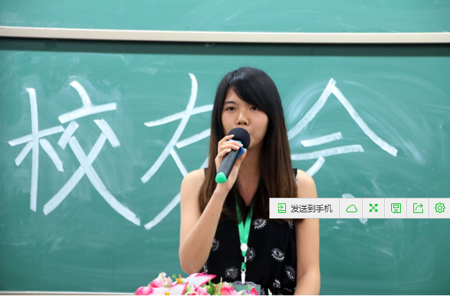 会上,李淑颖同学表示对东莞校区的怀念,表达了对经贸系的感谢,同时还向广大的校友发出诚挚的邀请,邀请大家常回“家”看看,并祝愿经贸系的校友之“家”能越办越好。