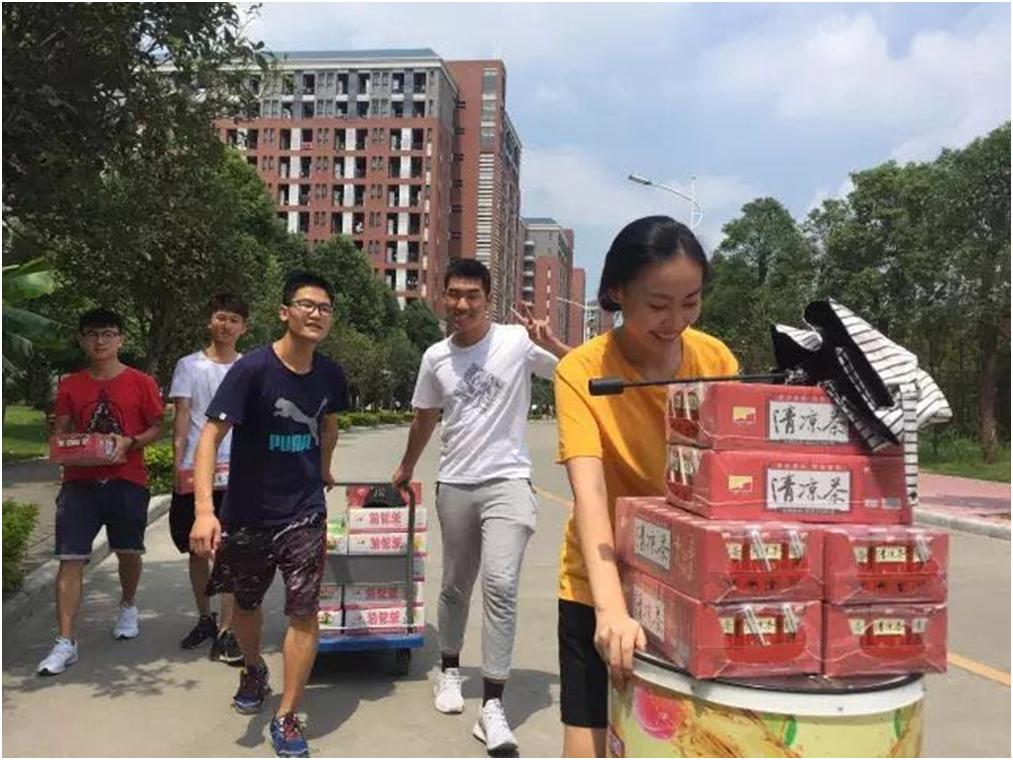 为了这次活动,经贸校友会早早就开始了准备工作。联系赞助商、申请活动批条、提前和教官沟通、购买冰块、搬运物资等。那么多繁杂的前期准备,就是为了看到师弟师妹们拿到冰镇饮料那一刻脸上露出的纯真笑容,为了让师弟师妹们感受到“家”的温暖……